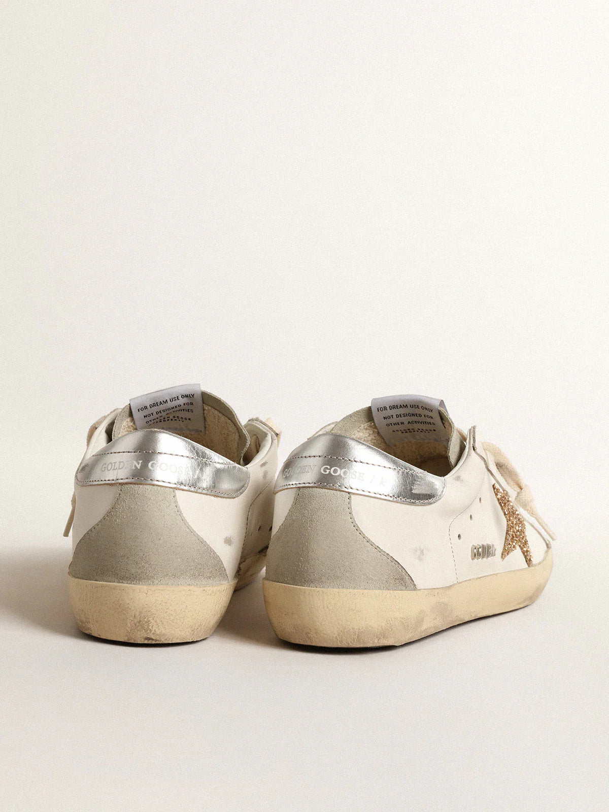 Une icône intemporelle, mais en constante évolution. Chez Golden, nous aimons reprendre nos classiques et les revisiter en permanence, toujours sous un nouveau jour. Dotées d’une tige en cuir blanc, ces Super-Star se distinguent par une étoile à paillettes dorées, un contrefort en cuir lamé argenté et une languette en daim gris froid. L’empiècement à l’arrière en daim gris froid et les lacets couleur crème apportent la touche finale.